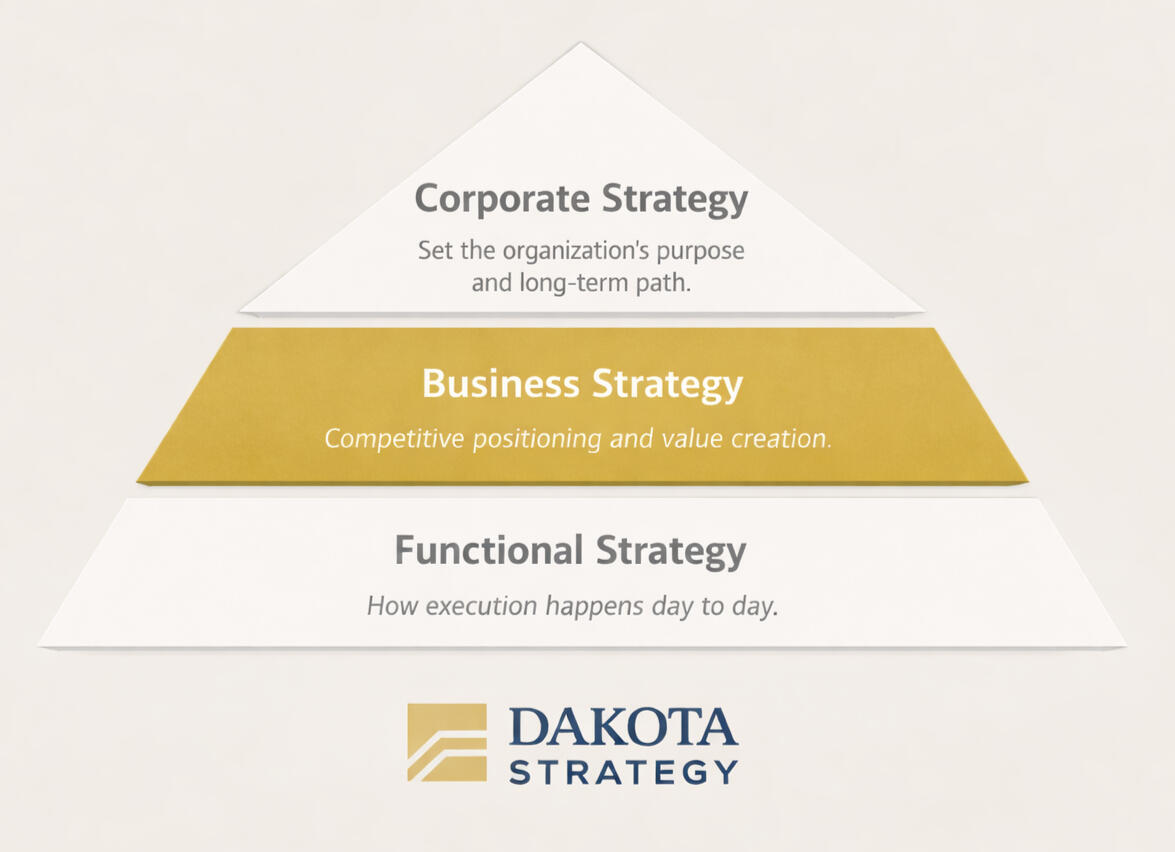 Strategy is not vision decks or buzzwords—Strategy is being explicit about what you want, why it matters, what stands in the way, and what must be built to close the gap.It's about working ON the business, not IN the businessStrategy isn’t a document.